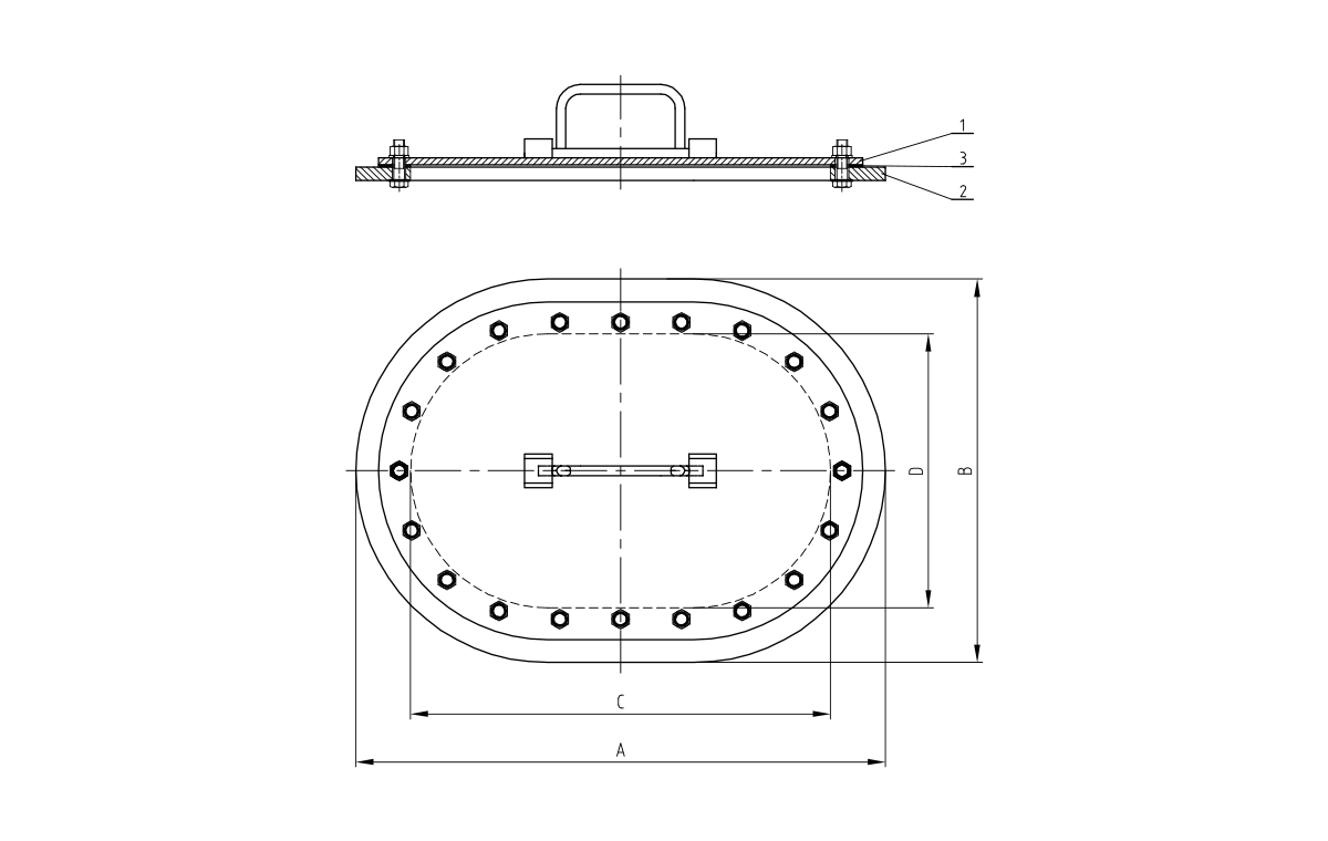 De primaire componenten omvatten een stalen afdekplaat en dekring, met een neopreenpakking voor afdichting. Bevestigingen bestaan uit stalen hex -kopbouten, roestvrijstalen hexmoeren en koperen sluitringen om corrosie op kritieke punten te voorkomen.